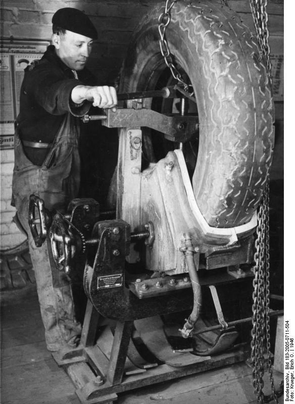 Introduction of the steam vulcanization process for the reconditioning of tyres.
